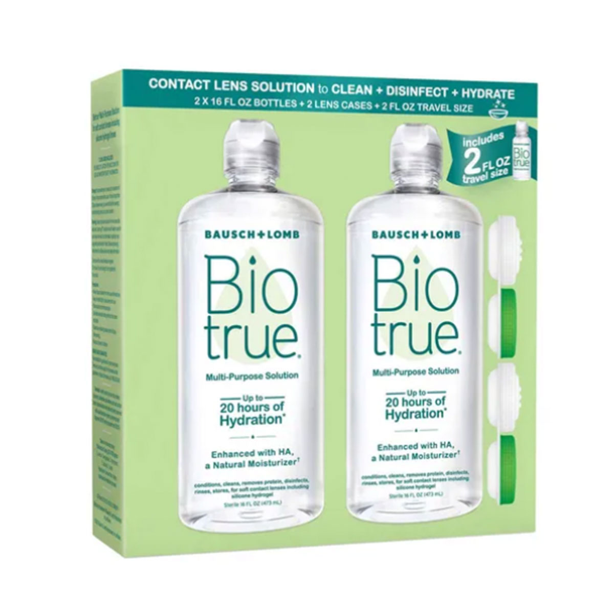 El pack Biotrue® Multi-Purpose Solution de Bausch + Lomb es una presentación práctica y de gran valor para pacientes que buscan mantener la limpieza y frescura de sus lentes de contacto blandas.